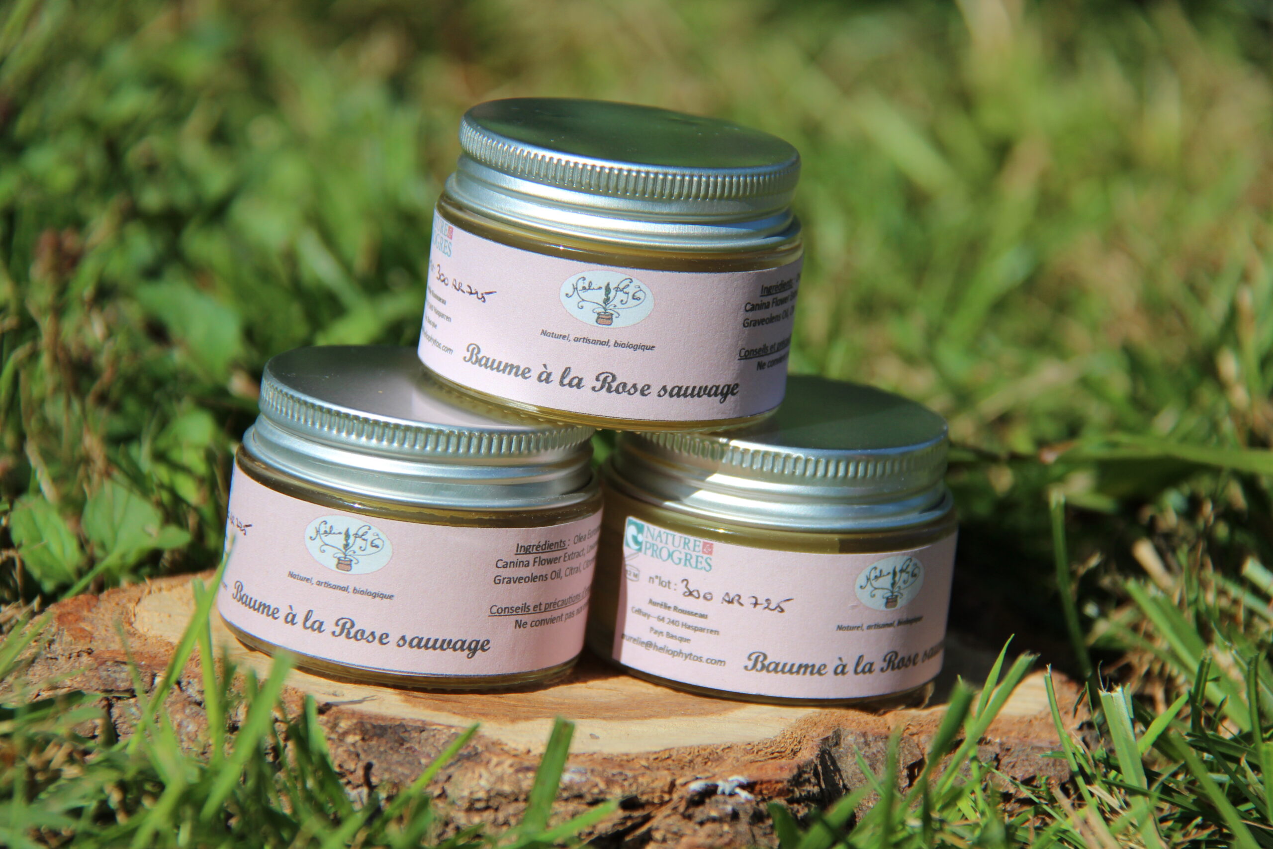 | Ingrédients | Macérât de pétales d’Eglantine dans huiles d’Olive et Tournesol, cire d’Abeille, amidon de Maîs, huiles essentielles de Géranium rosat, Lavande fine et Romarin 1.8 cinéole |