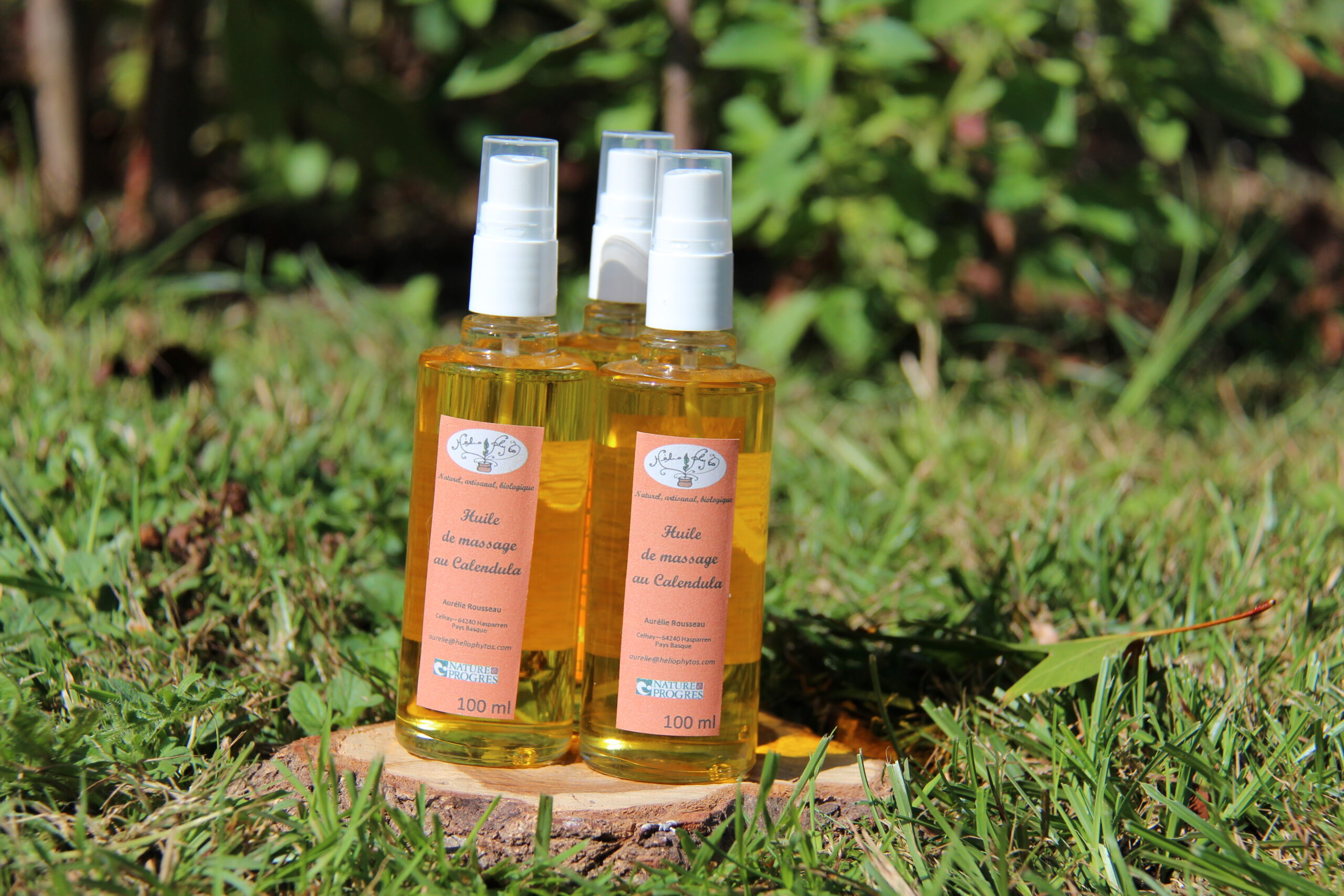 | Ingrédients | Macérât de Calendula dans huiles d’Olive et de Tournesol, huiles essentielles de Géranium rosat, Lavande fine et Romarin 1.8 cinéole |